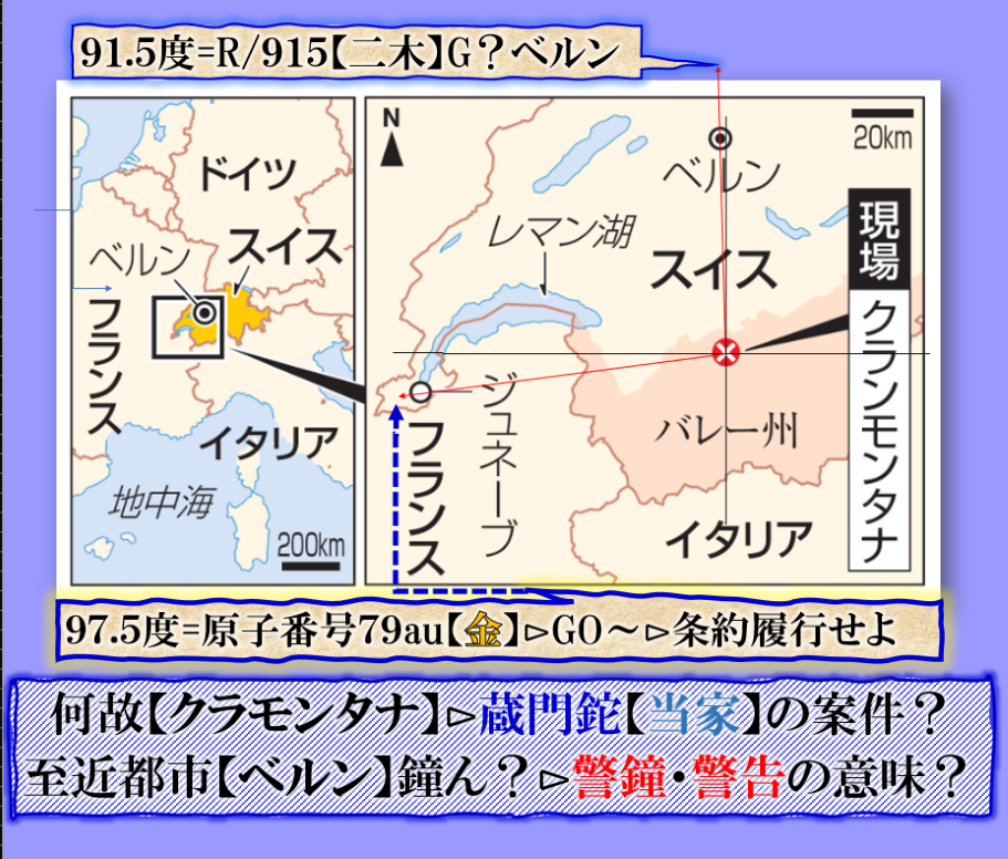 本件は可成り重大案件です、だから国際条約に関わる【ジュネーブ】・そして【ベルン】近郊【金鉱】で大爆発を起こして警鐘を発信した訳です、つまり国際問題である事が重大事案であり、本件を無視すればその次に何が来るのかは予想する事も恐ろしい話に成るでしょう、何とかしないといけません、其れが今年の重大案件だと言う事です。 sy