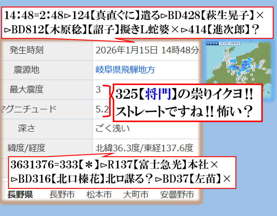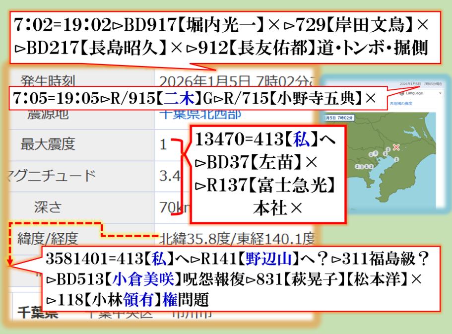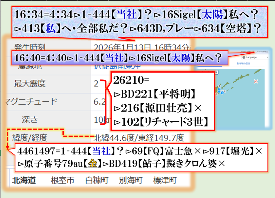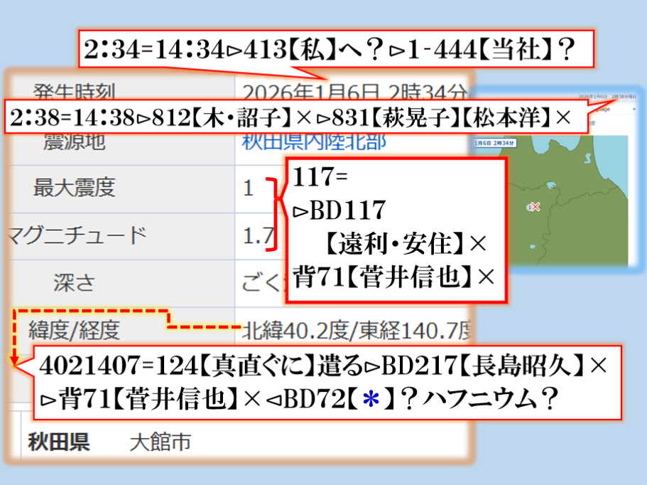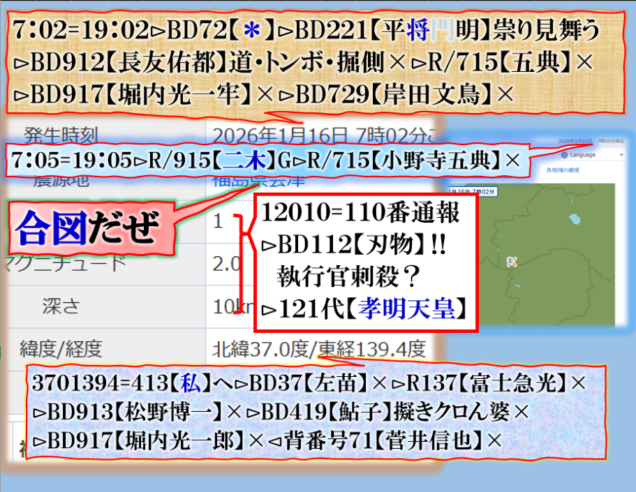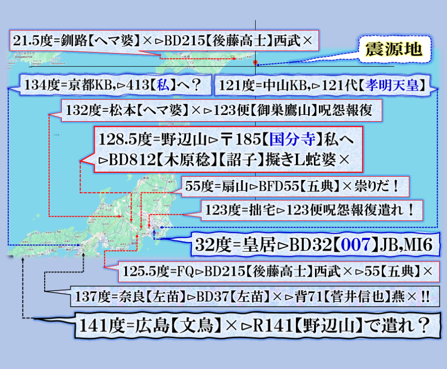 朝の報道に出て来た地震テロップで異変察知⊳分析して見たら是です、つまり【ソレ】に合わせて地震電報を発信して来た訳です。sy