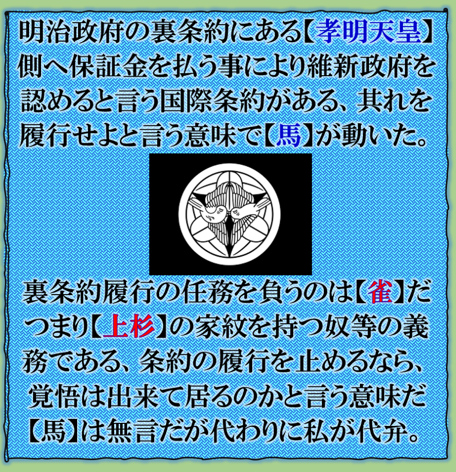 馬が此処まで言うのか❓【馬】だから言える真実です、その為に街中へ繰り出して来た、その後を警察車両が着いて来た、彼等にも【馬】を止める事は出来ません、その後自分で「厩舎」へ戻って行ったとある、当然である、其れが馬の帰巣本能があるからです。馬は自分の意思で街中へ繰り出したのかも知れません。【私】は任務として分析をして真実を公開しなければならないと思って居る訳だから、【馬】も私を必要として居た訳です。この事実を公開する事が【私】に課せられた任務だと理解をしました。歴史観が変わるかも知れませんが、~~~♬ sy