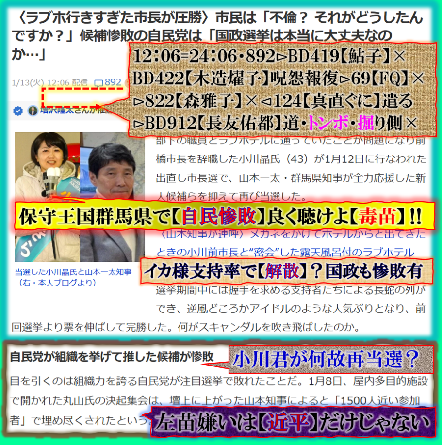 @0113⊳群馬の【小川君】当選でも【早苗】は誰もがヤバいと❓