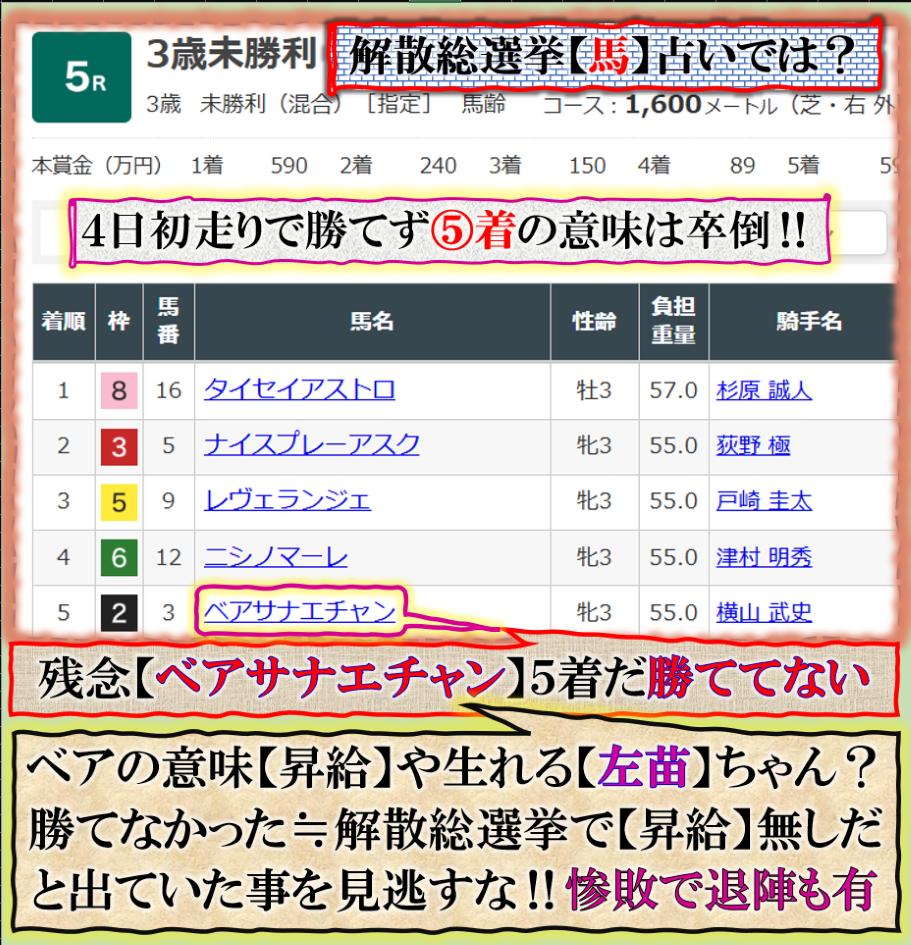 【ベアサナエチャン】≒ベアーとしたら【熊】の意味でも或る、解りましすよね、今年全国で【射殺処分】された【熊】は1万頭を超えていたらしい【同期】します、ベアーとは【射殺】された【安部アー】の事を意味して命名されたかも知れない≒【安部ア~】&【サナエチャン】馬の名前ってそうやって命名するのか❓無いとは思えない、だから【競馬】の世界は面白いのです。たかが【競馬】では無いのです、だから【競馬】なのです。 sy