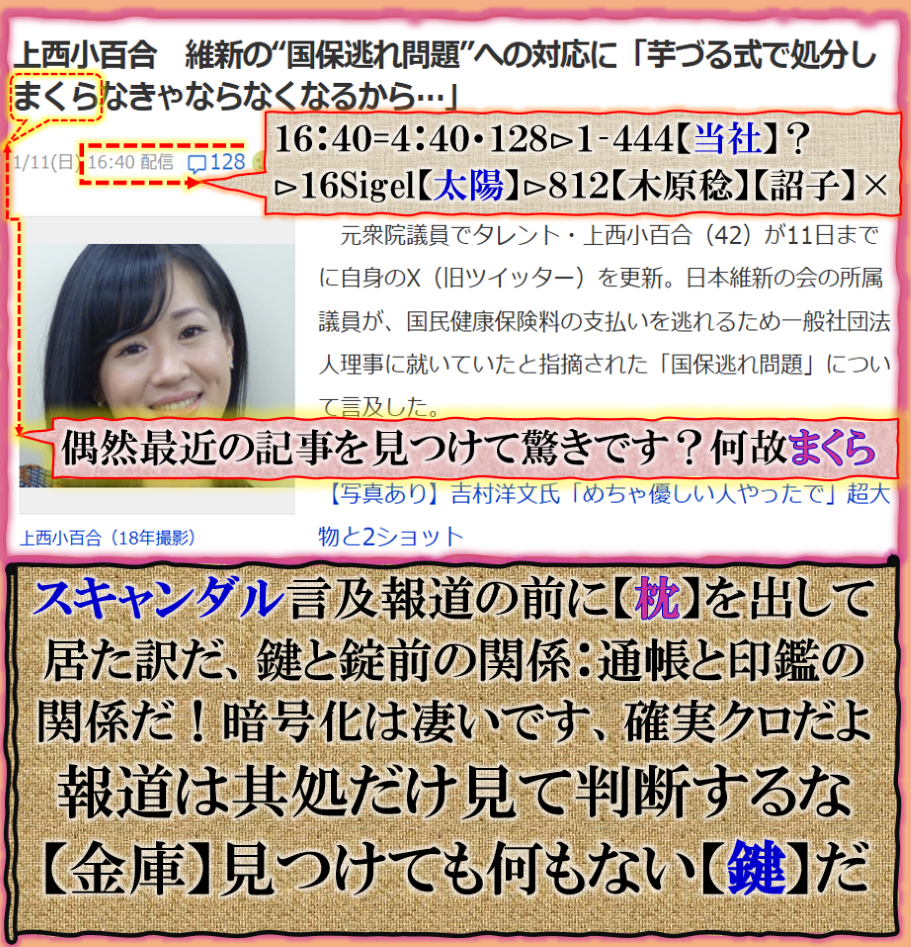 @0115⊳上西小百合の記事が先に出ていたしかも【枕】だ絶句!