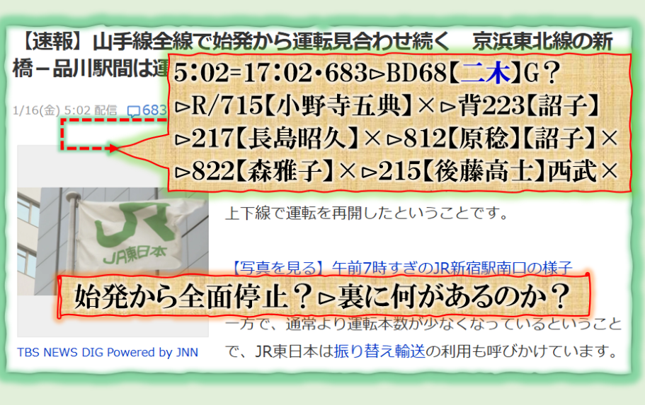 @0116⊳山手線全線停止続報から????