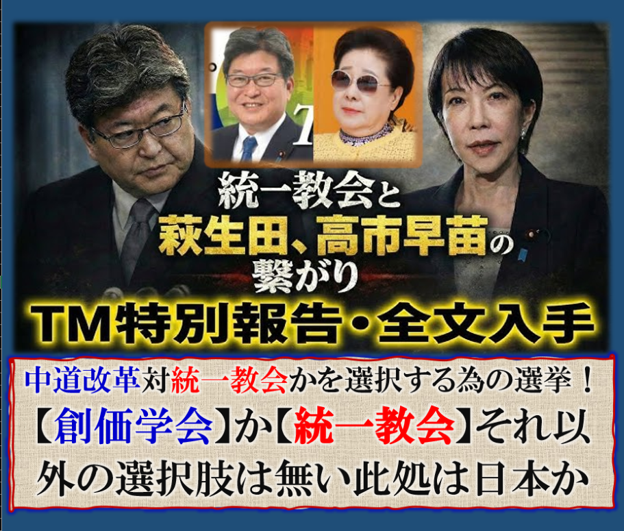 日本国民に許された選択は【統一教会】か【創価学会】かの選択を迫る選挙なのです、それ以外の政党は2つあるのだが、其れを選ぶしか無いのかも知れません。 sy